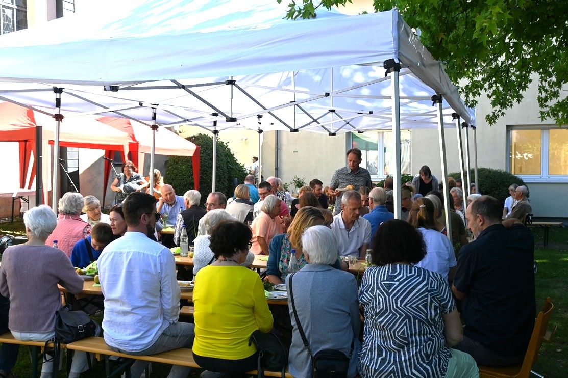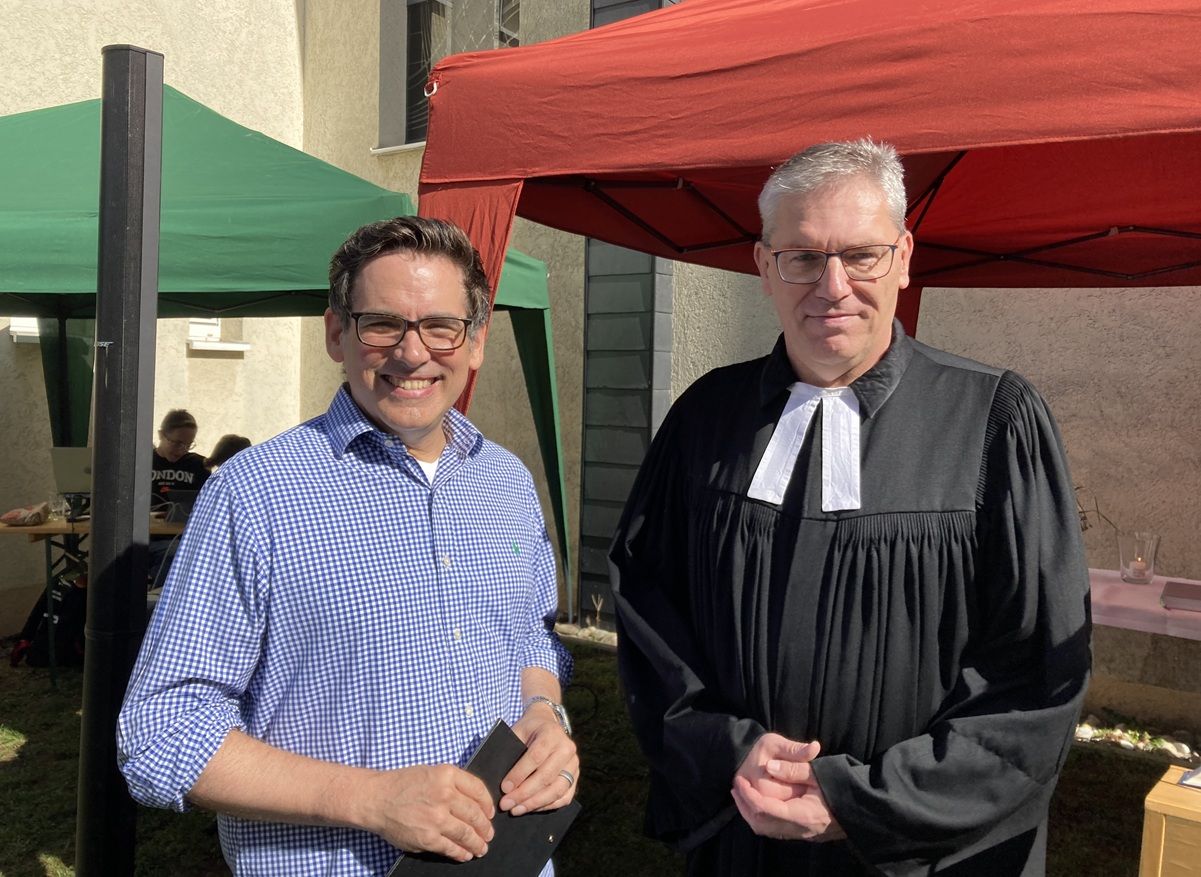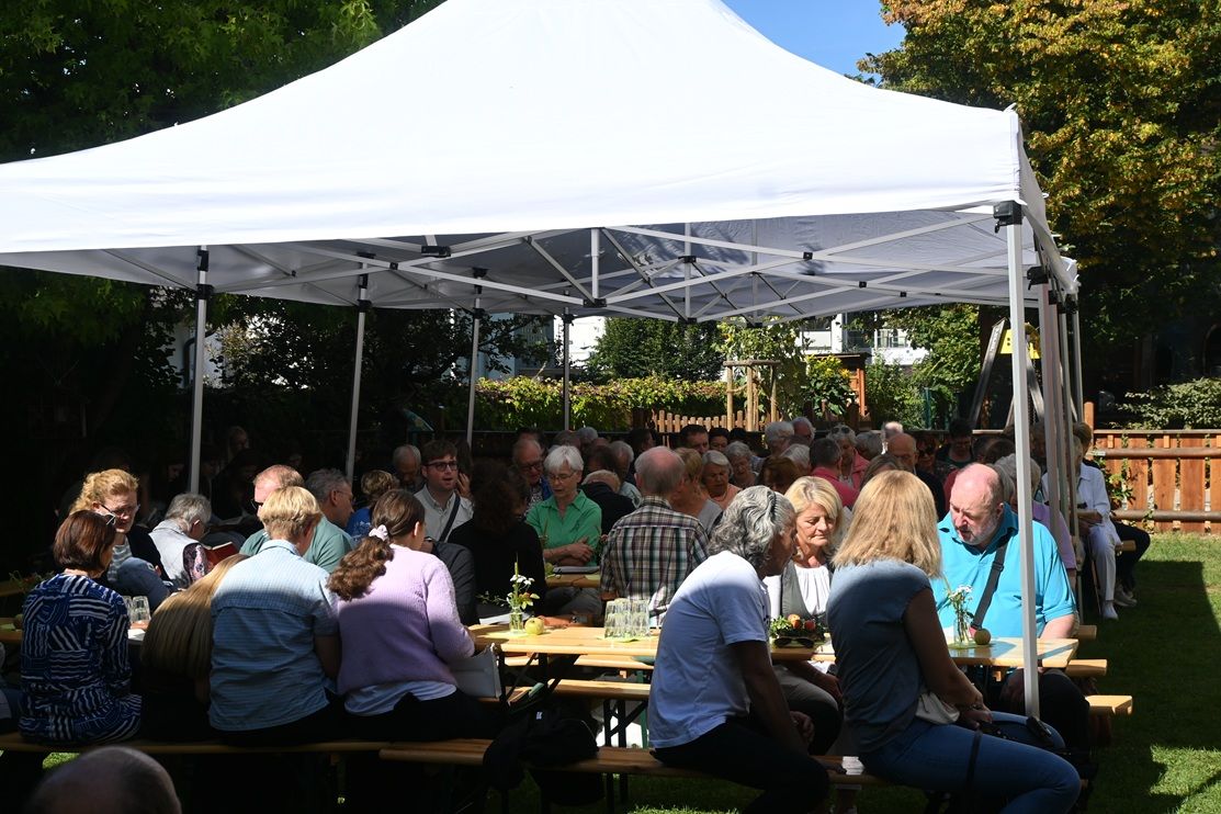 Um etwa 17:00 Uhr endete das kurzweilige Fest mit einem Segen durch Pfarrer Schellenberg. „Es ist nicht selbstverständlich, dass man in Vakanzzeiten ein Gemeindefest organisiert, darauf kann man stolz sein“, war seine Botschaft an die Auferstehungsgemeinde. Ja, das Fest war sehr gelungen, rund und schön, wie ein perfekter Apfel.