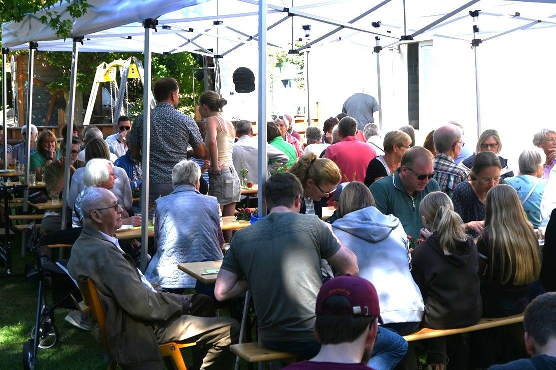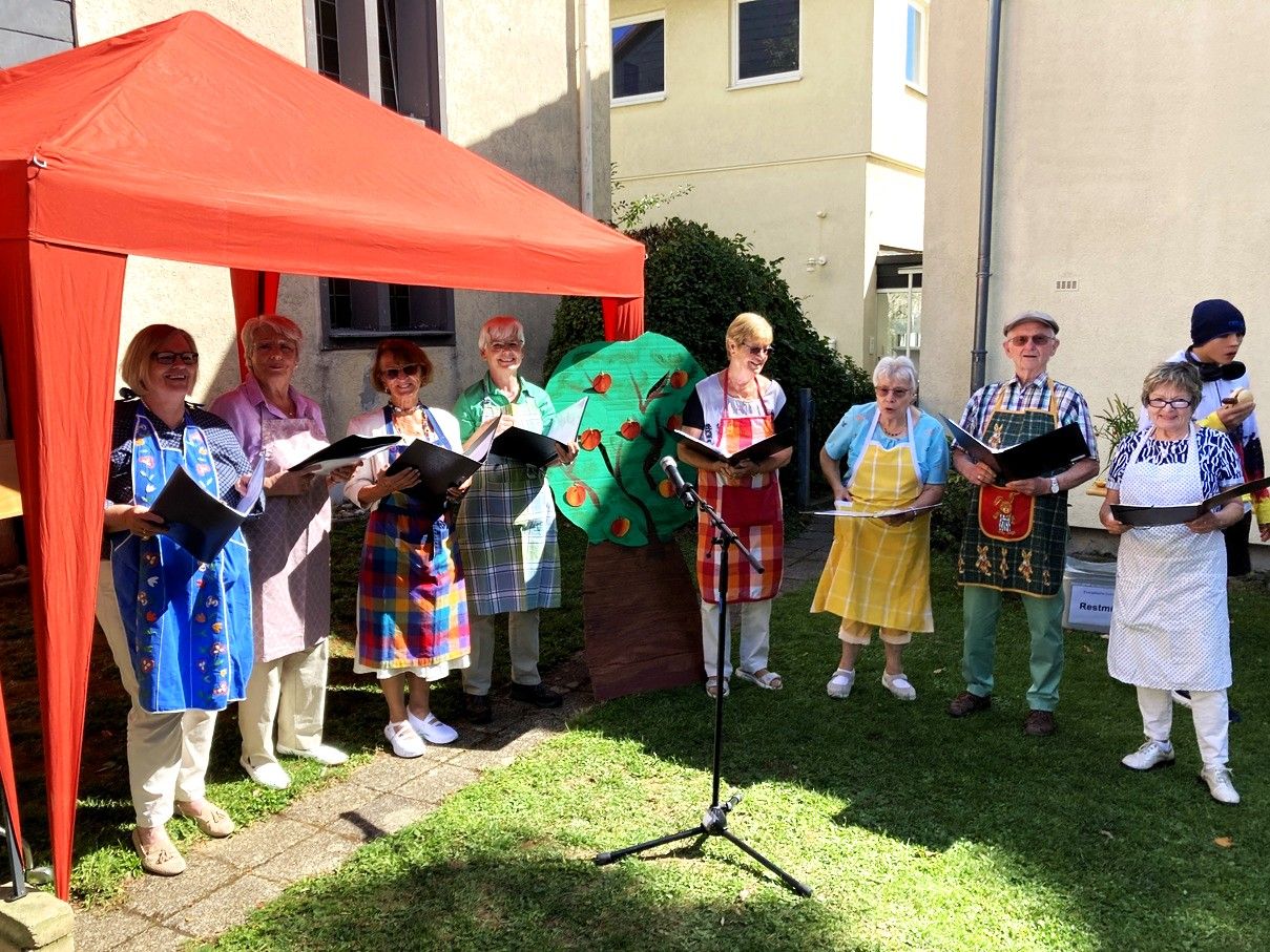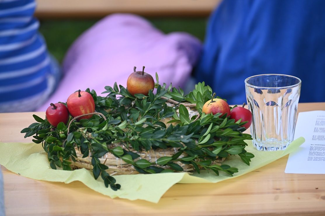 Das Gemeindefest am 6. September stand ganz im Zeichen des Apfels - die Predigt, die Podiumsdiskussion, die Pantomime, die Quizfragen, die Dekoration und viele Lieder der Gemeinde und des Singkreises. Ebenfalls gab es beim reichhaltigen Buffet einige Salate mit Äpfeln und auch beim Kuchenbuffet am Nachmittag waren mehrere Apfelkuchen vertreten.