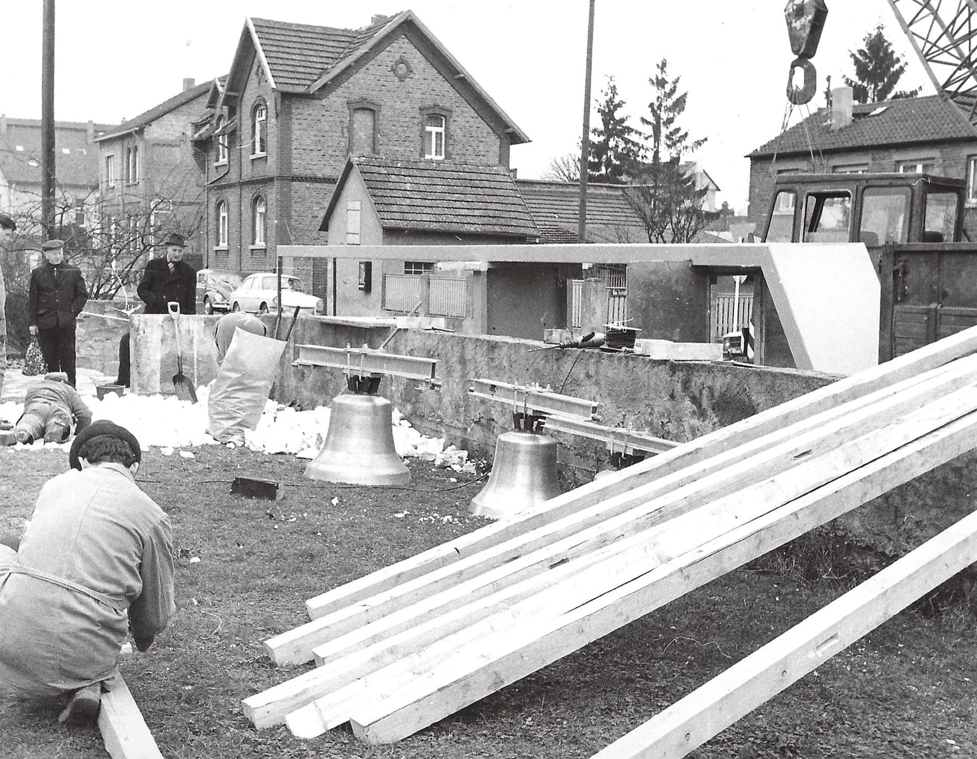 Errichtung des Glockenträgers 1970